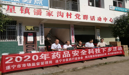 8月27日,遂宁市市场监督管理局组织市医药行业协会、四川建邦药业、射洪华通药业等企业共10余人,深入定点扶贫点射洪明星镇潘家湾村,开展“药品安全科技下乡”活动—2020年遂宁市市场监管局科技活动周系列活动。市市场监管局副局长李玲参加活动并进行现场指导。