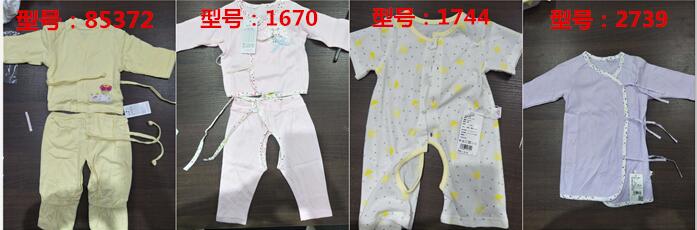 本次召回范围内的短袖哈衣、偏系睡衣、偏系宝宝套、四条腿套装(商标为“圣婴”,型号:1744、2739、1670、85372),由于1744型号面料强力不够,附件达不到要求;1670、2739、85372型号设计原因绳带长度不符合要求。
