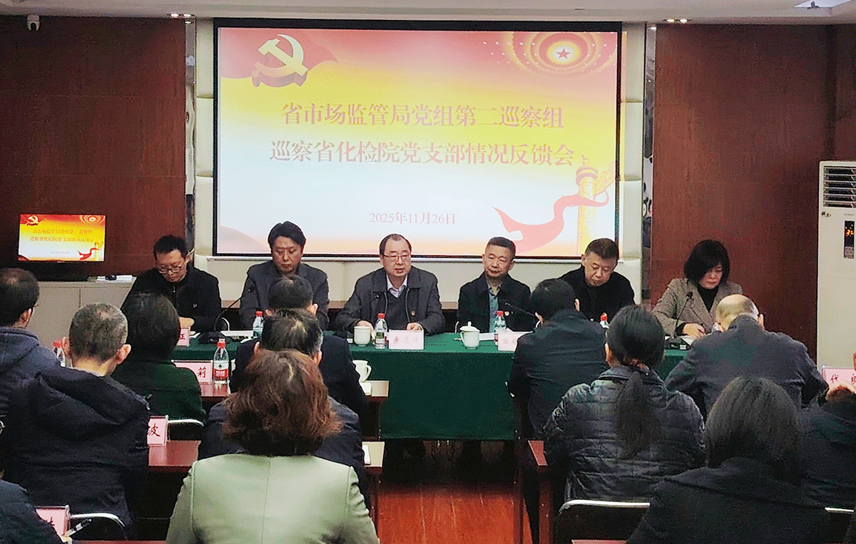 11月26日,省市场监管局党组第二巡察组向省化检院党支部反馈巡察情况。安全总监余德仲出席并讲话,二级巡视员、第二巡察组组长田培友反馈巡察情况,局巡察办副主任刘刚传达局党组巡察和巡察整改工作要求,省化检院党支部书记陈晓霞主持并作表态发言。