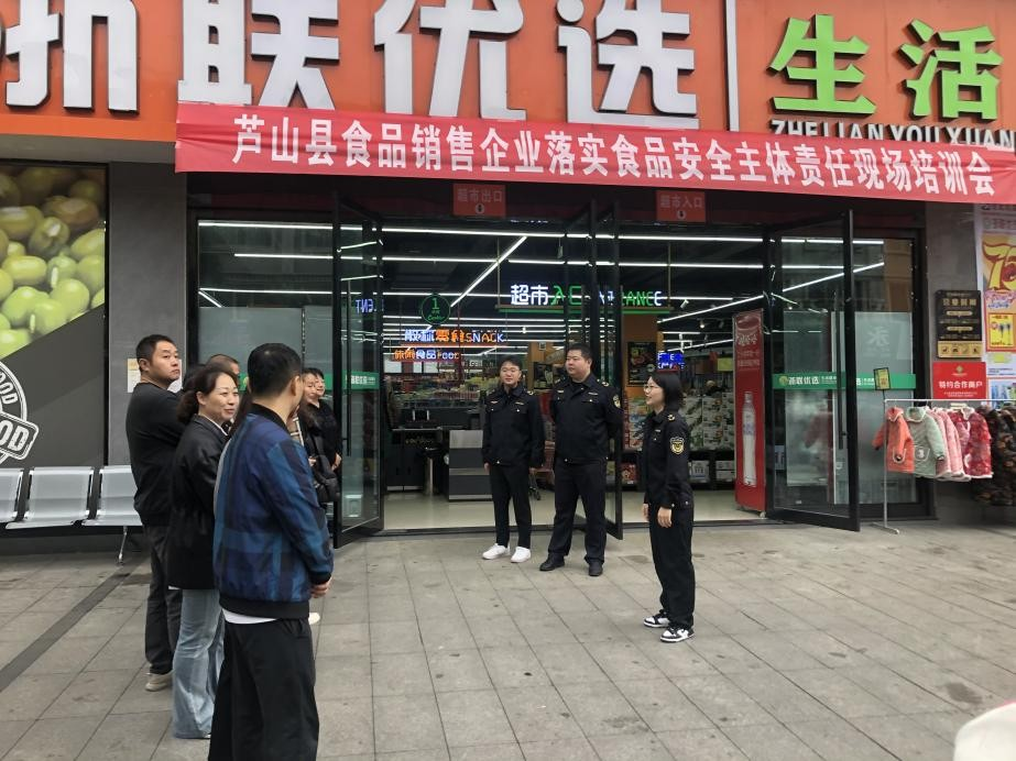 近日,芦山县市场监管局组织30多家食品销售企业在芦山县浙联优选超市举行落实食品安全主体责任现场培训。
