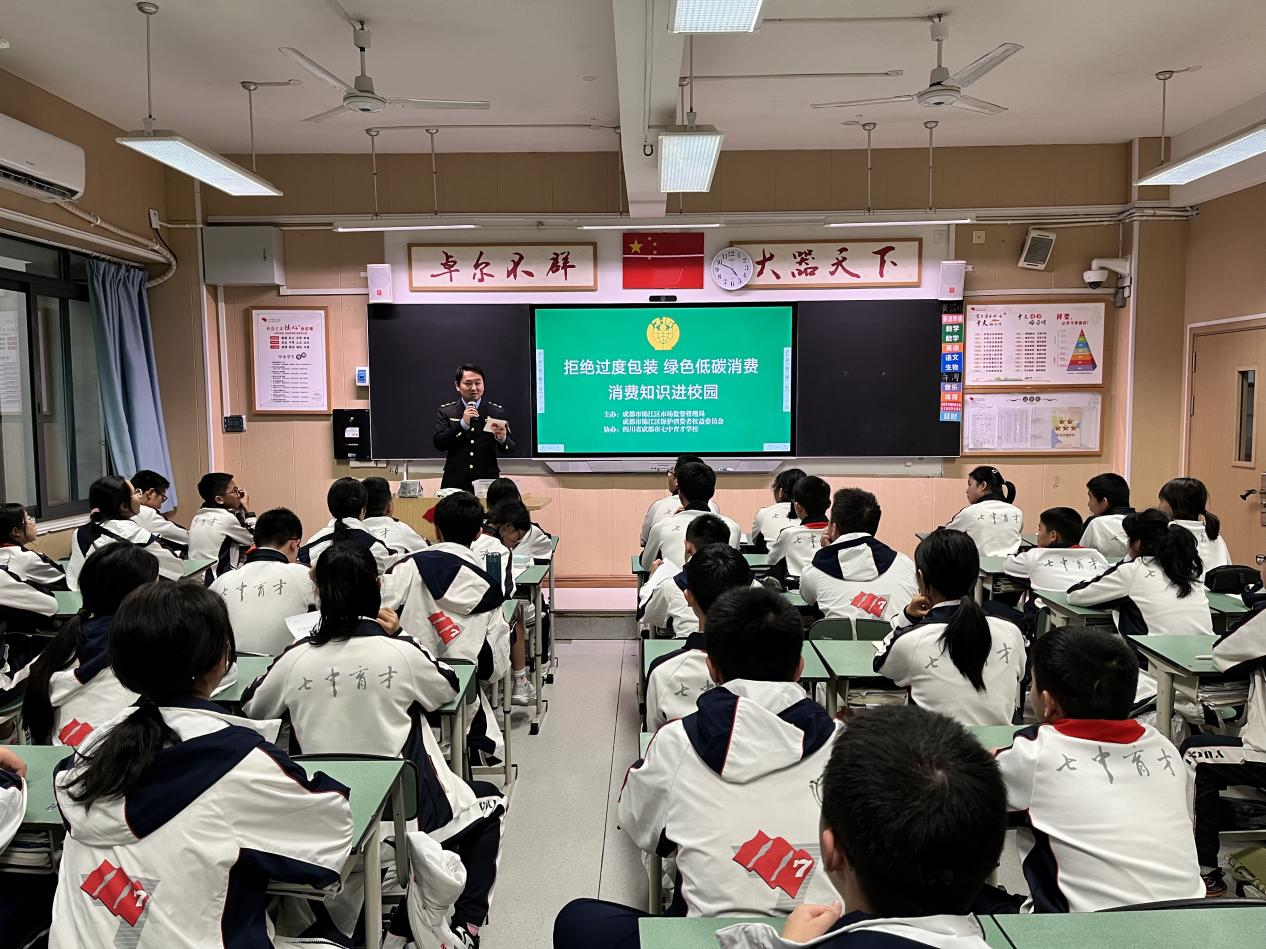 10月28日,由成都市锦江区市场监管局、成都市锦江区消委会联合主办,成都市七中育才学校协办的“拒绝过度包装,绿色低碳消费”消费知识进校园活动顺利开展。