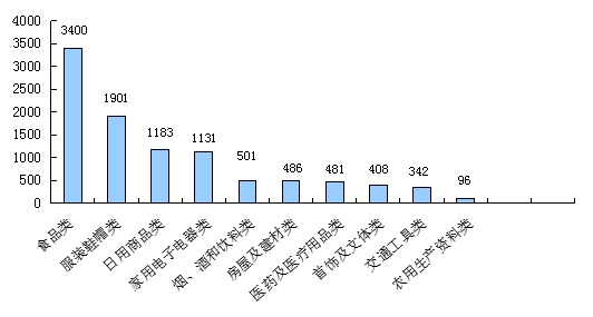 按商品种类划分,食品类、服装鞋帽类和日用商品类消费者投诉居前三位(见图2)