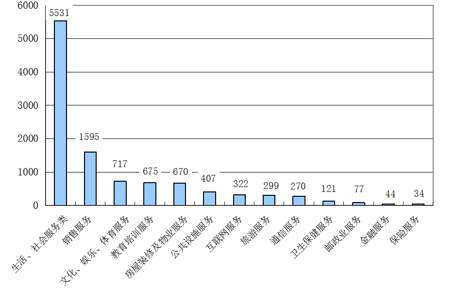按服务种类来分,涉及生活、社会服务,销售服务,文化、娱乐、体育服务的消费者投诉居前三位(见图3)。