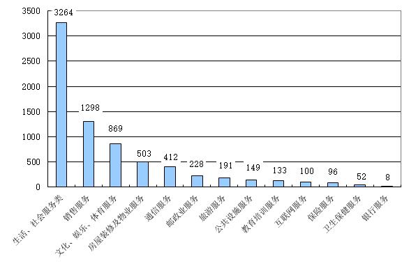 按服务种类来分,涉及生活、社会服务,销售服务,文化、娱乐、体育服务的消费者投诉居前三位(见图3)。