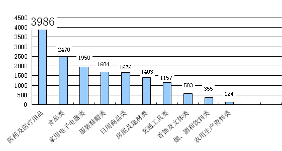 按商品种类来分,涉及医药及医疗用品、食品、家用电子电器类的消费者投诉居前三位(见图2)