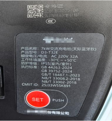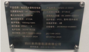 三、查看产品标识。2025年8月1日之后生产的电动汽车充电桩,产品铭牌应至少清晰标识以下信息:公司名称、简称、商标或可识别制造商的独特标识;产品名称、型号;序列号或生产批次号或设备编号;生产日期;交流/直流额定电压(V);交流/直流额定电流(A)。