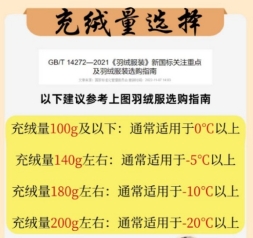 充绒量是指羽绒服中羽绒填充物的含量,充绒量越高,羽绒服越厚实,可根据穿着环境选择合适的充绒量。